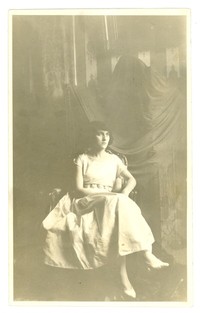 [Retrato de Magdalena Petit] [fotografía]. [Santiago, Chile] : [Editor no identificado], 1915. 1 fotografía : virado a sepia, 14 x 8,8 cm. .