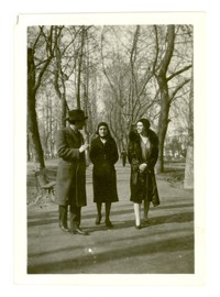 Magdalena paseando en el Parque Forestal, con dos personas no identificadas.