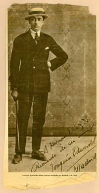 [Retrato de Joaquín Edwards Bello] [fotografía]. [Madrid, España] : [Editor no identificado], 1919. 1 fotografía : impresa, 28 x 14 cm .