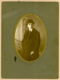 [Retrato de Joaquín Edwards Bello] [fotografía]. [París, Francia] : [Photo Muguet], 1916. 1 fotografía : Virado a sepia, 28 x 18 cm / 14,5 x 9,7 cm .