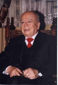 Gonzalo Rojas en la Sala América de la Biblioteca Nacional de Chile.
