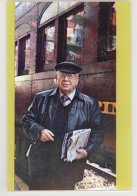 [Gonzalo Rojas al lado de un ferrocarril] [fotografía] / Jorge Aravena Llanca. Santiago, Chile : [Jorge Aravena Llanca], 2002. 1 fotografía : Monocromo blanco y negro, papel fotográfico brillante, 9 x 13,8 cm. .