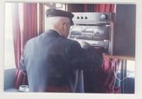 [Gonzalo Rojas revisando un equipo de audio] [fotografía] / Jorge Aravena Llanca. Chillán, Chile : [Jorge Aravena Llanca], 2000. 1 fotografía : Color, papel fotográfico brillante, 9 x 12 cm. .
