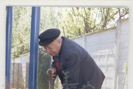 [Gonzalo Rojas en el patio de su casa arreglando el jardín] [fotografía] Jorge Aravena Llanca.