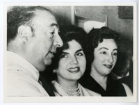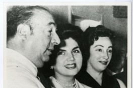 Pablo Neruda con Silvia Araya y Margarita Pinochet en la casa de Pedro Olmos.