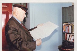 [Gonzalo Rojas revisando un documento] [fotografía] / Jorge Aravena Llanca. Chillán, Chile : [Jorge Aravena Llanca], 2000. 1 fotografía : Color, papel fotográfico brillante, 10 x 15 cm. .