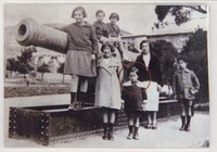 Gonzalo Rojas con sus hermanos, junto a su madre Celia Pizarro.