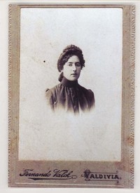 [Abuela materna de Gonzalo Rojas] [fotografía]. Ovalle, Chile : [Fernando Valck], [cerca 1908]. 1 fotografía : Virado a sepia, papel fotográfico brillante, 9 x 13 cm. .
