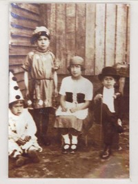 Gonzalo Rojas vestido de mago junto a otros niños disfrazados.
