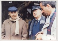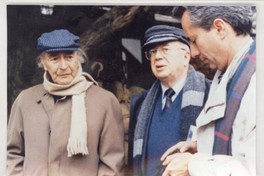 Gonzalo Rojas junto a Juvencio Valle y su hijo Rodrigo Rojas Mackenzie de visita a la casa de verano.
