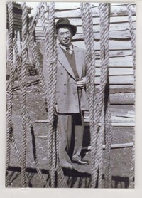 [Gonzalo Rojas en Lebu] [fotografía] / Rodrigo Rojas Mackenzie. Lebu, Chile : [Editor no identificado], 1954. 1 fotografía : Monocromo blanco y negro, papel fotográfico brillante, 9 x 13 cm. .