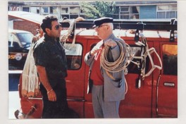[Gonzalo Rojas con un hombre no identificado] [fotografía] / [Jorge Aravena Llanca]. Chillán, Chile : [Jorge Aravena Llanca], [2000]. 1 Fotografía : Color, papel fotográfico brillante, 9 x 13 cm. .