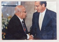 [Gonzalo Rojas con el Presidente de México] [fotografía]. [México] : [Editor no identificado], 1998. 1 Fotografía : Color, papel fotográfico brillante, 10 x 14 cm. .