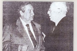 [Gonzalo Rojas y Octavio Paz] [fotografía]. [Madrid, España] : [Editor no identificado], 1993. 1 Fotografía : Monocromo blanco y negro, papel fotográfico brillante, 9 x 13 cm. .