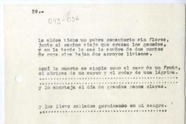 [La aldea tiene un pobre cementerio sin flores...] [manuscrito] / Oscar Castro. 1 hoja ; 22 cm. .
