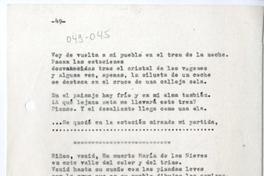 [Voy de vuelta a mi pueblo en el tren de la noche ...] [manuscrito] / Oscar Castro. 1 hoja ; 22 cm. .