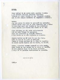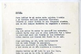 Madre [manuscrito] / [Oscar Castro] seudónimo: Raúl Gris. 1 hoja ; 22 cm. .