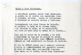 Versos a Rosa Esperanza [manuscrito] / Oscar Castro. 1 hoja ; 22 cm. .
