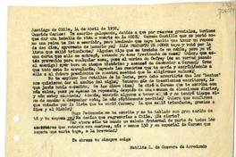 [Carta] 1958 abril 14, Santiago de Chile [a] Querido Carlos [Sabat] [manuscrito] Matilde L. de Guevara de Arredondo.