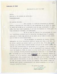 Carta donde comenta las elecciones realizadas en la Sociedad de Escritores de Chile.