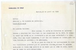 [Carta] 1958 abril 20, Madrid [a] Matilde L. de Guevara de Arredondo, Santiago [manuscrito] Carlos Sánder.
