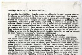 [Carta] 1958 abril 23, Santiago de Chile [a] mi querido Hugo Emilio [Pedemonte] [manuscrito] [Matilde Ladrón de Guevara].