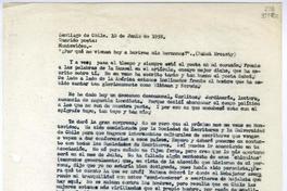 [Carta] 1958 junio 10, Santiago de Chile [a] Querido poeta [Carlos Sabat], Montevideo [manuscrito] [Matilde Ladrón de Guevara].