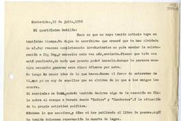 [Carta] 1958 julio 19, Montevideo [a] Mi queridísima Matilde [Ladrón de Guevara] [manuscrito] Hugo Emilio [Pedemonte].