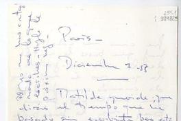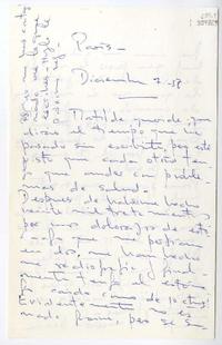 [Carta] 1958 diciembre 7, Paris [a] Matilde querida [manuscrito] Beba.