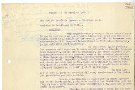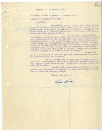 Le pide disculpas por no haberla visitado, le comenta que representó muy bien a la Sociedad de Escritores de Chile en el Congreso Internacional de Fraternidad Universal y que luego enviará material relacionado.