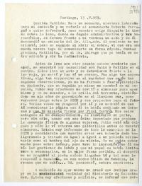 Agradece libro enviado por Matilde, le comenta que se encontró con Pablo Neruda y luego con Enrique Araya y por último informa que ya hizo llegar todo el material a Vea.