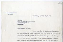 [Carta] 1959 agosto 17, Santiago [a] Matilde Ladrón de Guevara [manuscrito] Wolfgang Larrazábal.