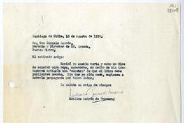 Acusa recibo de carta y le solicita la pronta publicación del libro.