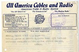 [Telegrama] 1959 septiembre 2, Buenos Aires [a] Matilde Ladrón de Guevara, Santiago [manuscrito] [Gonzalo] Losada.