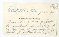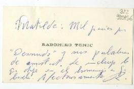 [Tarjeta] [1959, Santiago] [a] Matilde [manuscrito] Radomiro Tomic.