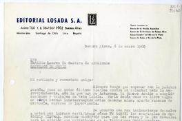 [Carta] 1960 enero 6, Buenos Aires [a] Matilde Ladrón de Guevara de Arredondo, Santiago de Chile [manuscrito] Gonzalo Losada.