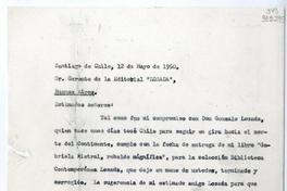 [Carta] 1960 mayo 12, Santiago de Chile [a] Sr. Gerente de la Editorial Losada, Buenos Aires [manuscrito] Matilde Ladrón de Guevara.