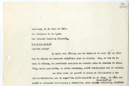 [Carta] 1960 mayo 14, Santiago [a] Ministro de la Corte Don Eduardo González Ginouvés [manuscrito] / [Matilde Ladrón de Guevara]. 1 hoja ; 28 cm. .
