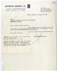 [Carta] 1960 mayo 24, Buenos Aires [a] Matilde Ladrón de Guevara de Arredondo, Santiago de Chile [manuscrito] / Editorial Losada. 1 hoja ; 28 cm. .