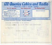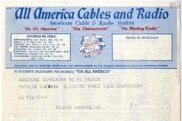 [Telegrama] 1960 agosto 18, Curazao [a] Matilde Guevara, Santiago [manuscrito] Norman Chumaceiro.
