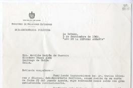 [Carta] 1960 septiembre 5, La Habana [a] Matilde Ladrón de Guevara, Santiago de Chile [manuscrito] Celestino Rodríguez Argemí.