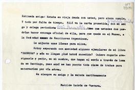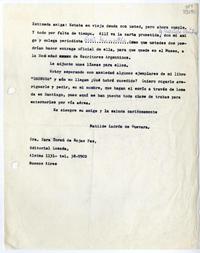 [Carta] [1960, Santiago] [a] Sara Tornú de Rojas Paz, Editorial Losada, Buenos Aires [manuscrito] / Matilde Ladrón de Guevara. 1 hoja ; 28 cm. .