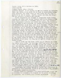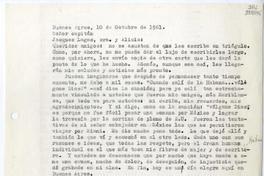 [Carta] 1961 octubre 10, Buenos Aires [a] Señor capitán Jacques Lagas y Alicia [manuscrito] / Matilde [Ladrón de Guevara]. 1 hoja ; 28 cm. .