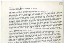 [Carta] 1961 octubre 13, Buenos Aires [a] querida hermana [manuscrito] / Matilde [Ladrón de Guevara]. 2 hojas ; 28 cm. .