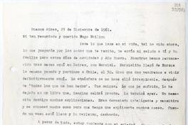 [Carta] 1961 diciembre 23, Buenos Aires [a] Mi tan recordado y querido Hugo Emilio [manuscrito] / Matilde [Ladrón de Guevara]. 1 hoja ; 28 cm. .