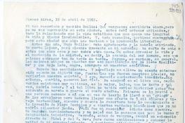 [Carta] 1962 abril 19, Buenos Aires [a] Mi tan recordado y querido Emilio [manuscrito] / Matilde [Ladrón de Guevara]. 1 hoja ; 28 cm. .