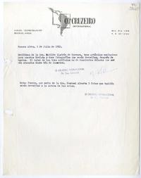 [Carta] 1962 julio 2, Buenos Aires [a] Matilde Ladrón de Guevara [manuscrito] / Revista O Cruzeiro. 1 hoja ; 28 cm. .