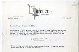 [Carta] 1962 julio 2, Buenos Aires [a] Matilde Ladrón de Guevara [manuscrito] Revista O Cruzeiro.