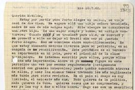 [Carta] 1962 julio 28, Río de Janeiro [a] Querida Matilde [manuscrito] Eva [Vastari].