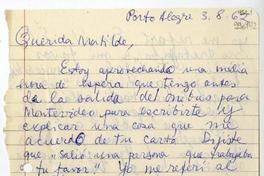 [Carta] 1962 agosto 3, Porto Alegre [a] Querida Matilde [manuscrito] Eva [Vastari].